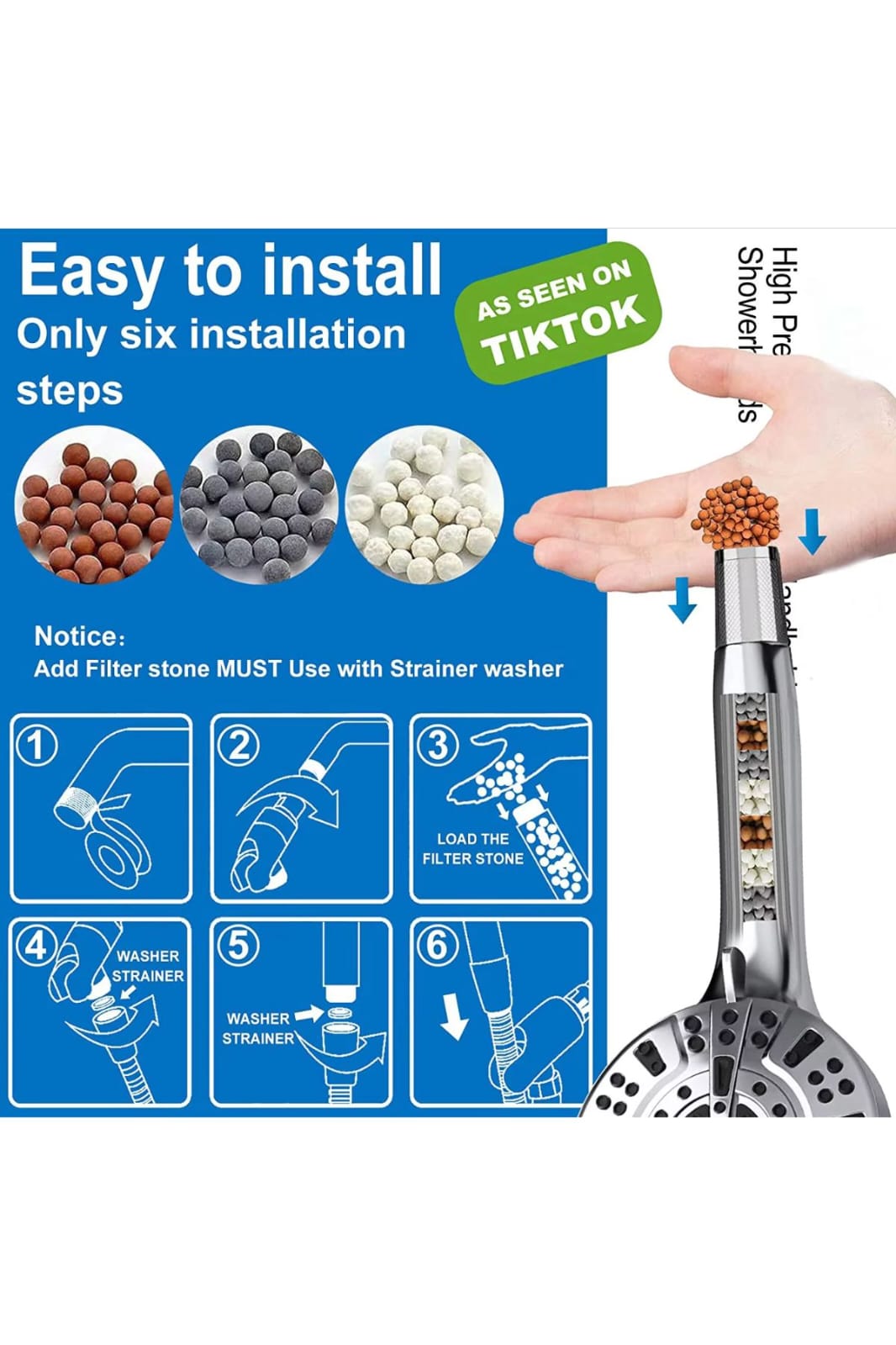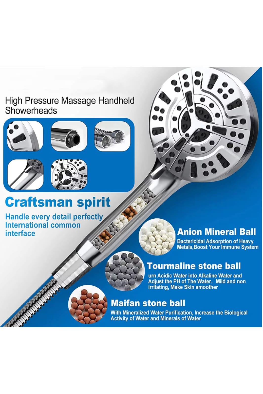 يمنحك تدفق ماء قوي ومنعش بفضل تصميمه عالي الضغط وفلتر المعادن الطبيعي الذي ينقّي الماء ويجعل البشرة أنعم.